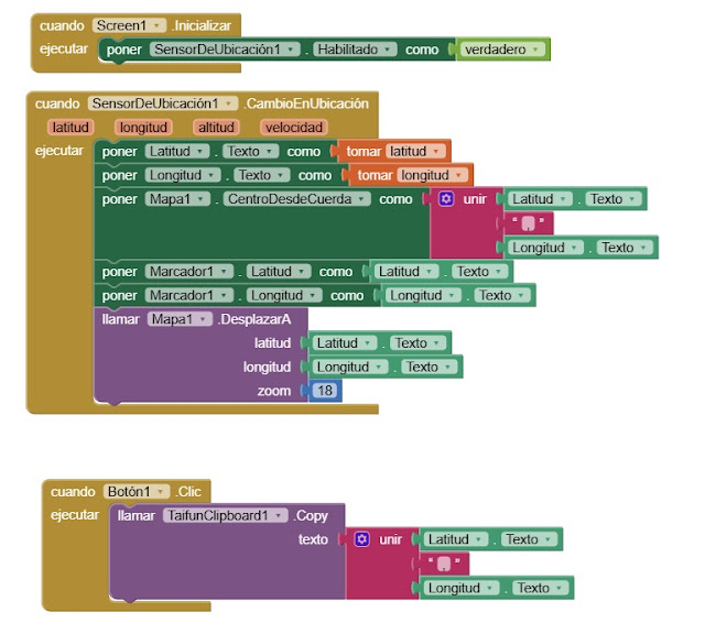 He usado el temporizador (clock) a intervalos de 100 ms en vez del sensor Giroscopio para imitar el bloque de control "por siempre" de Scratch ahorrando batería del móvil. |
